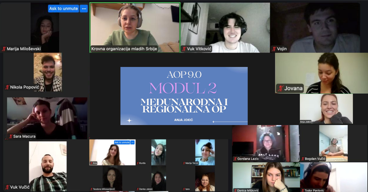 Proteklog vikenda, 11. i 12. oktobra, održan je drugi modul devete generacije Akademije omladinske politike (AOP). Ovaj modul je održan onlajn, a tema su bile međunarodna i regionalna omladinska politika.