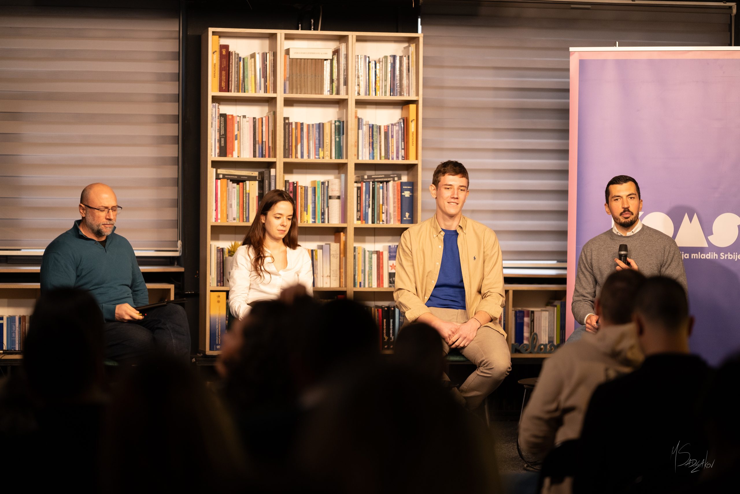 Drugi panel, „Godina iza nas – šta se promenilo za mlade?“, otvorio je diskusiju o društvenim i političkim promenama koje su obeležile prethodnu godinu. Tokom ovog panela, sa moderatorom Radovanom Seratlićem razgovarali su Nikola Maletić – student Fakulteta političkih nauka, Sara Dojčinović psihološkinja iz organizacije PIN i Dragan Stanojević, sociolog i profesor Filozofskog fakulteta Univerziteta u Beogradu.